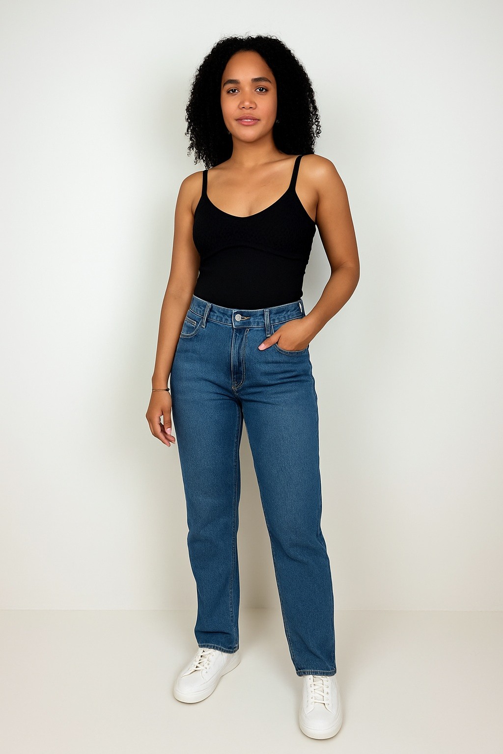 A modelagem reta da calça jeans traz uma estrutura que valoriza todos os corpos e transmite uma imagem mais alinhada, mesmo em propostas casuais.